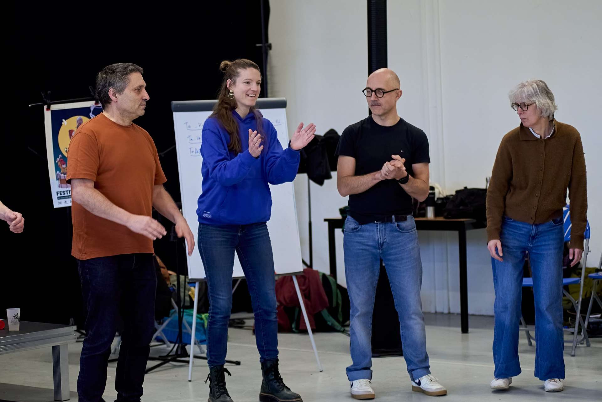 À travers une diversité de jeux et d’exercices issus notamment des pédagogies actives Toumback, Konnakol, ou Dalcroze, les participants ont exploré les possibilités sonores et rythmiques du corps et de la voix. Ils ont expérimenté des jeux musicaux permettant de faire circuler la pulsation au sein du groupe et de développer une approche intuitive et libérée du rythme.