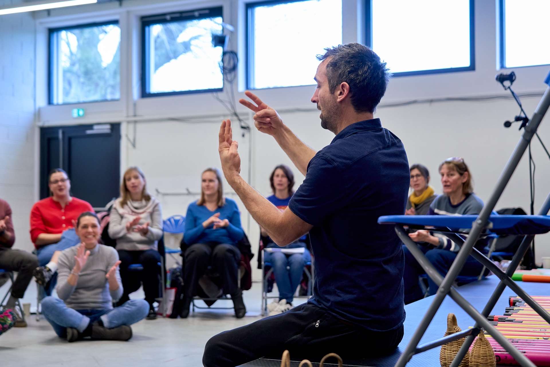 Cette formation proposait une immersion dans l’univers des percussions corporelles et du chant rythmique pour accompagner l’entrée dans la polyrythmie.