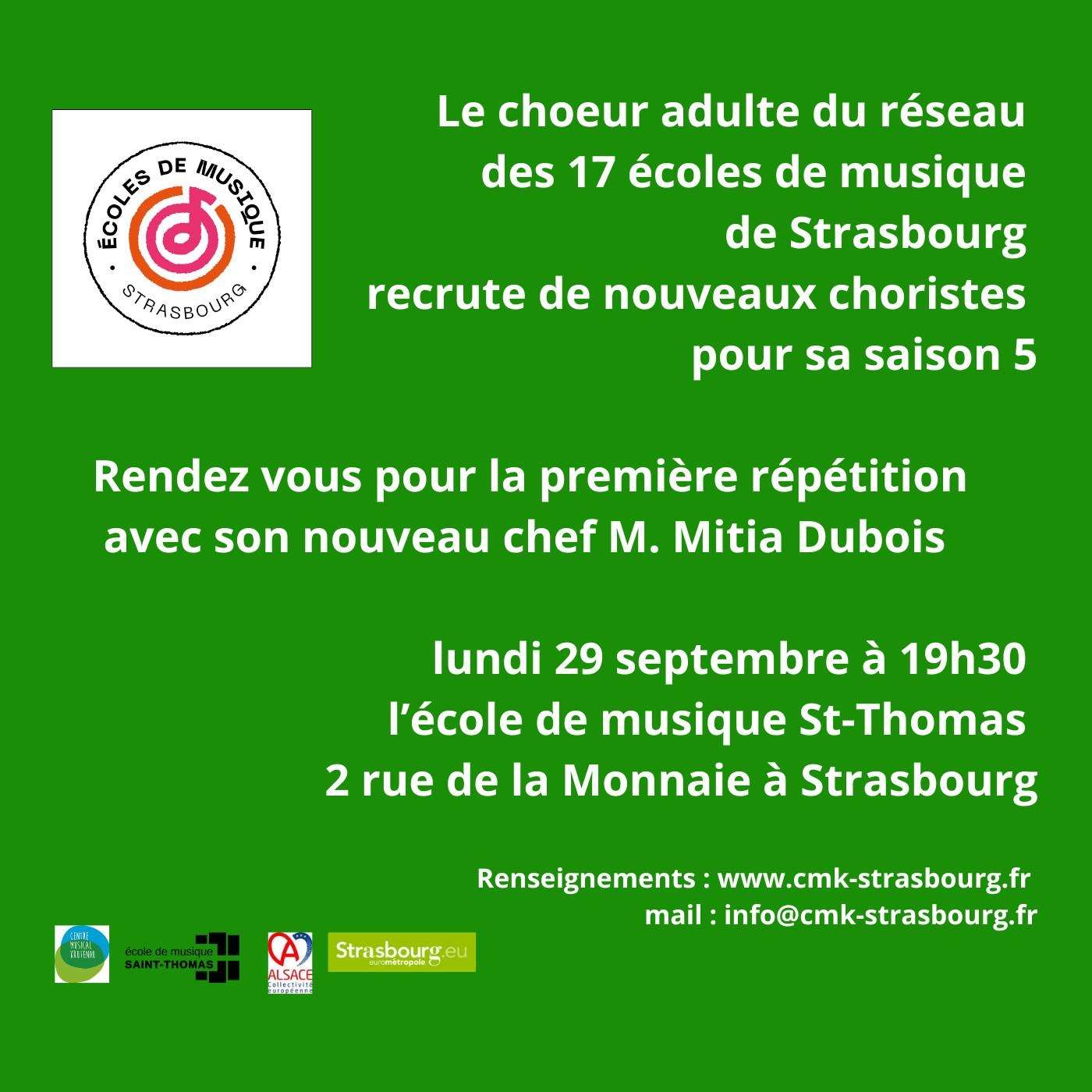 Pour découvrir cette nouvelle saison, rejoignez la toute première séance le lundi 29 septembre à l’école de musique St Thomas, à 19h30 (2 rue de la Monnaie, 67000 Strasbourg).
