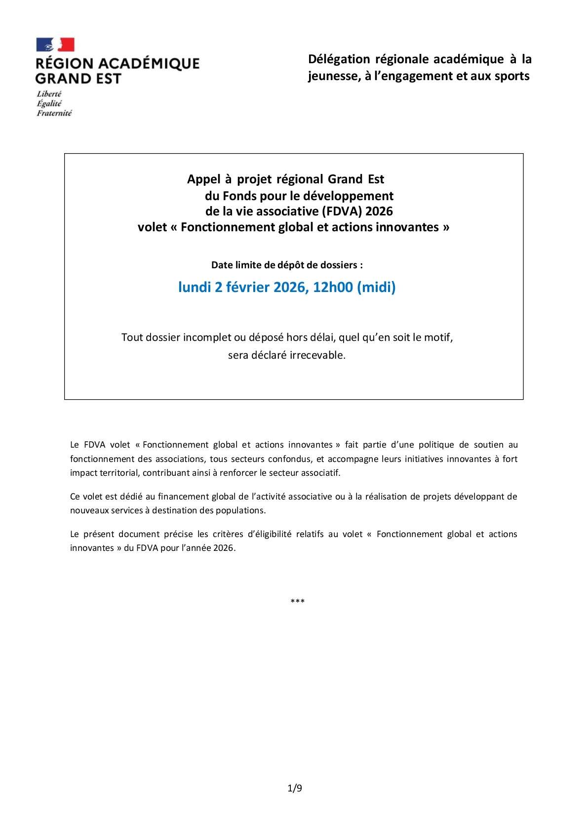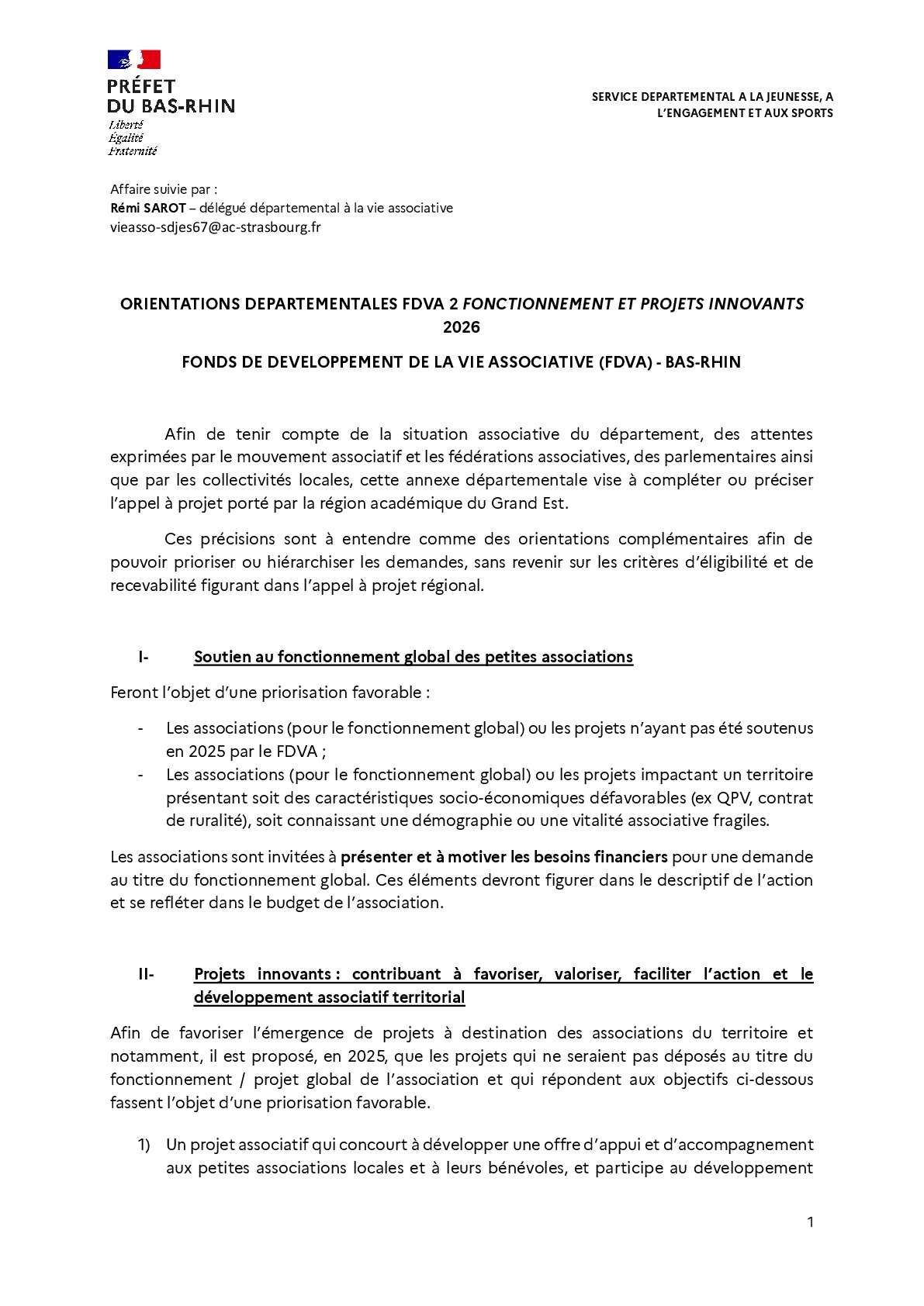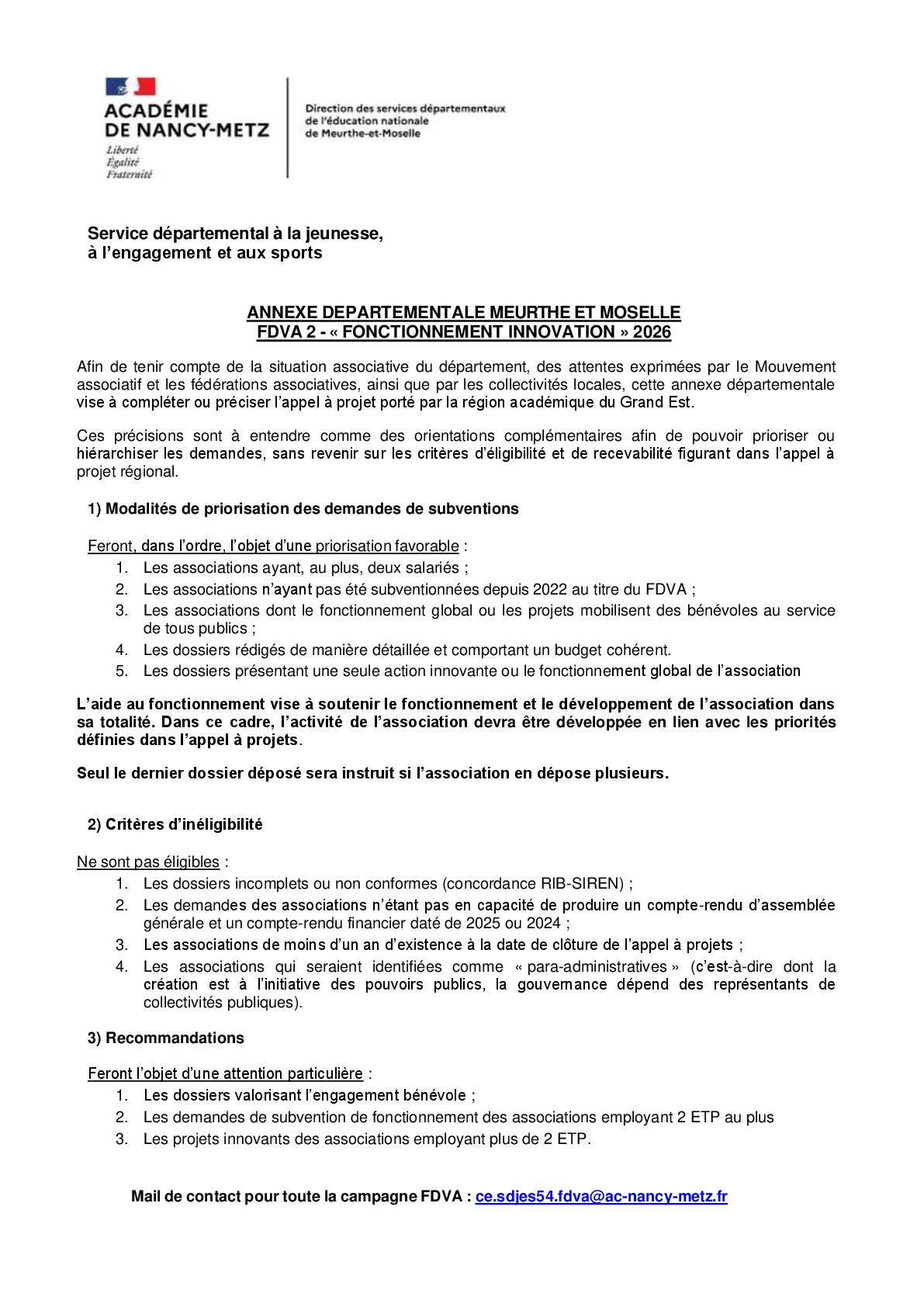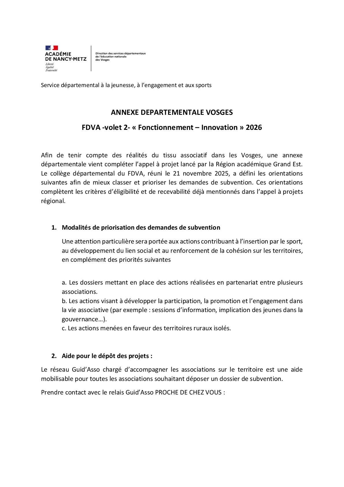 Fonctionnement global et actions innovantes (FDVA 2)